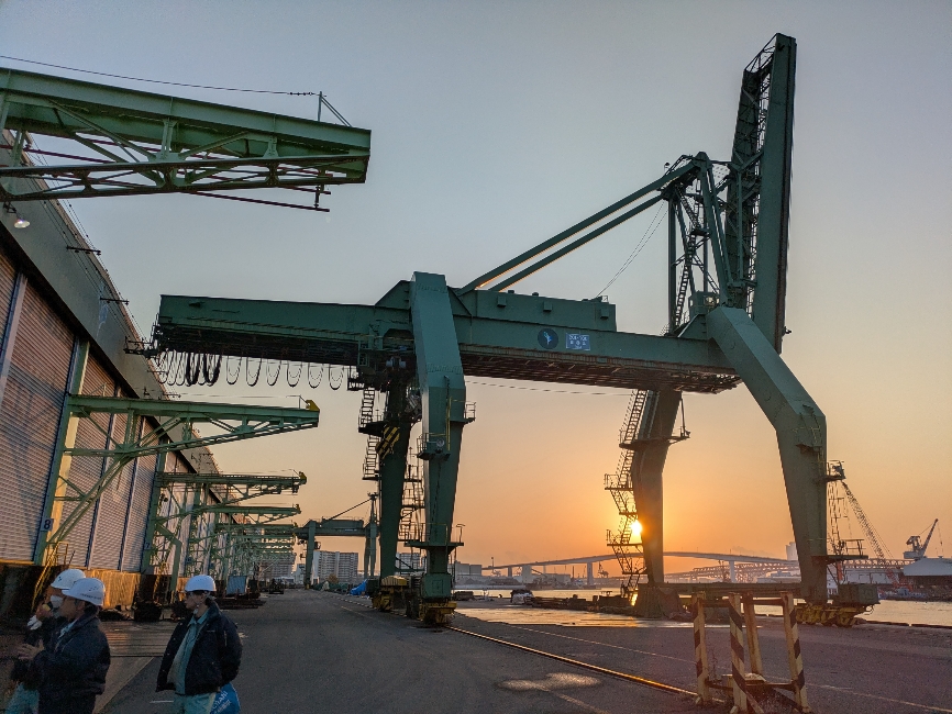 こちらは、入庫時に製品へタグを装着することで、製品情報を管理できる「置き場管理システム」です。クレーン運転室のモニターに製品が表示され、運転士1名での出庫やはい替え作業が可能となります。また、誤出庫のリスク低減、生産性向上に繋がっています。このようなシステム導入に加え、長年培ってきた専門知識・技術力により、関西地区における鉄鋼製品の代表的物流基地として、迅速かつ正確な作業と安全で効率的な港湾物流サービスを提供しています。