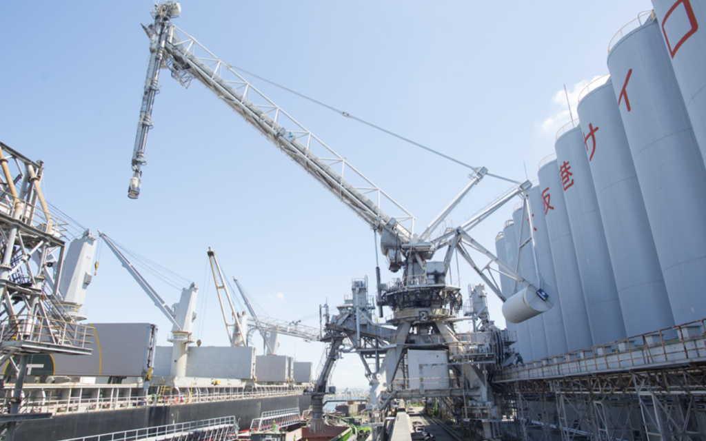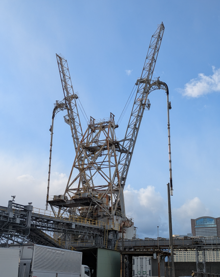 こちらは、ニューマチックアンローダーと機械式アンローダー(V.S.C)と呼ばれる荷役設備です。吸引タイプ、スクリュータイプ等性能が異なり、用途によって使い分けています。それぞれ最大1時間当たり400トンの吸い上げ能力を持っています!